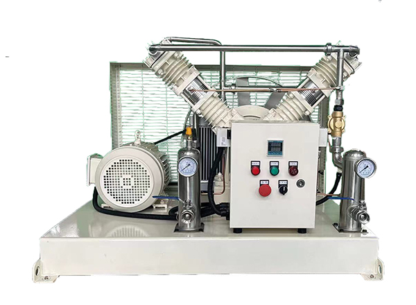 全無油設(shè)計,導(dǎo)向環(huán)、活塞環(huán)、活塞桿填料均采用自潤滑材料,無油潤滑。軸承部件采用耐高溫脂潤滑,不與壓縮介質(zhì)接觸,避免壓縮過程中對氣體的污染,保證氣體純度。根據(jù)實際用氣情況,壓縮機分為單級或多級壓縮;結(jié)構(gòu)形式分為單缸、雙缸、三缸、四缸及組合式多缸結(jié)構(gòu);冷卻方式分為風(fēng)冷和水冷。